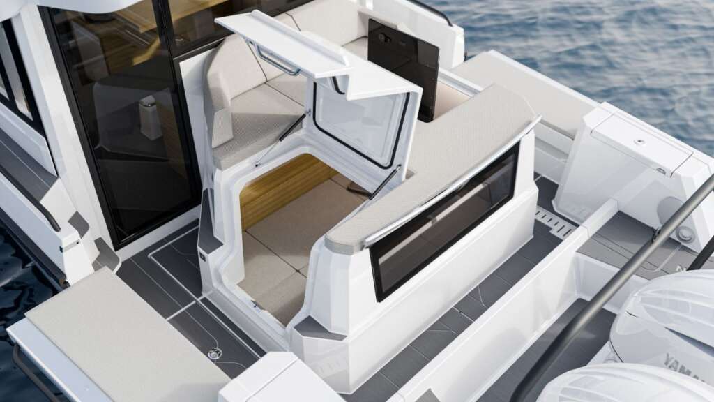 Designed and assembled in Finland, the Quarken 35 Cabin Tourer stands for a premium and sporty experience on the water. Clean, modern, and sophisticated Nordic design combined with a nimble, responsive, and fuel-efficient twin-step hull, gives a new meaning for riding in style.The spacious cabin offers panoramic views with great visibility and easy access as well as plenty of room for a functional galley and a dining area. The glass sky window provides a light-flooded atmosphere and sweeping views for your quests.